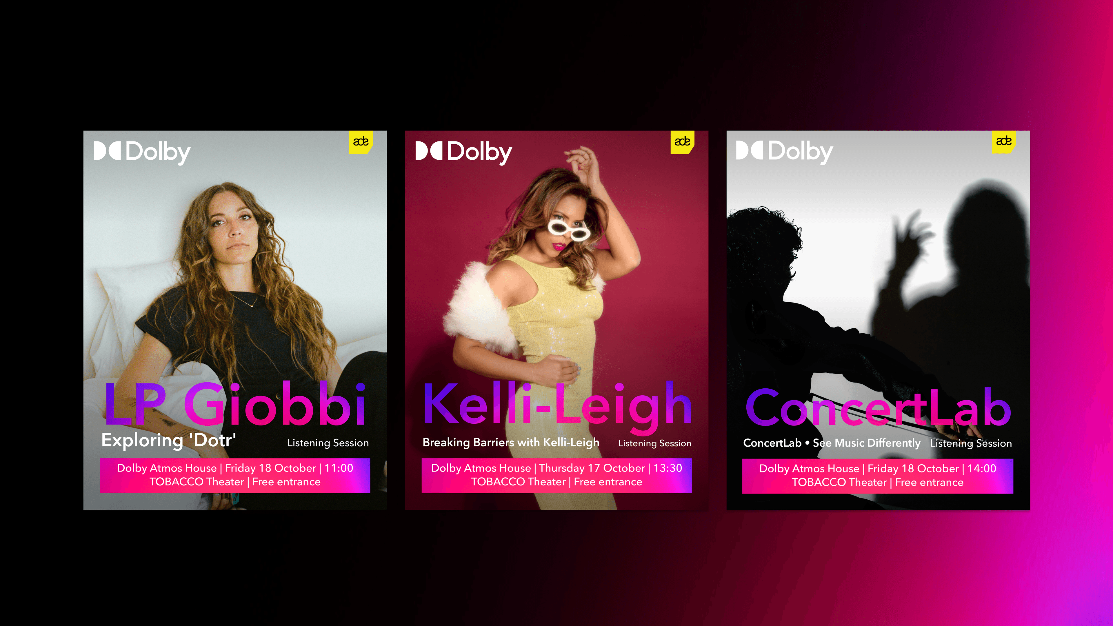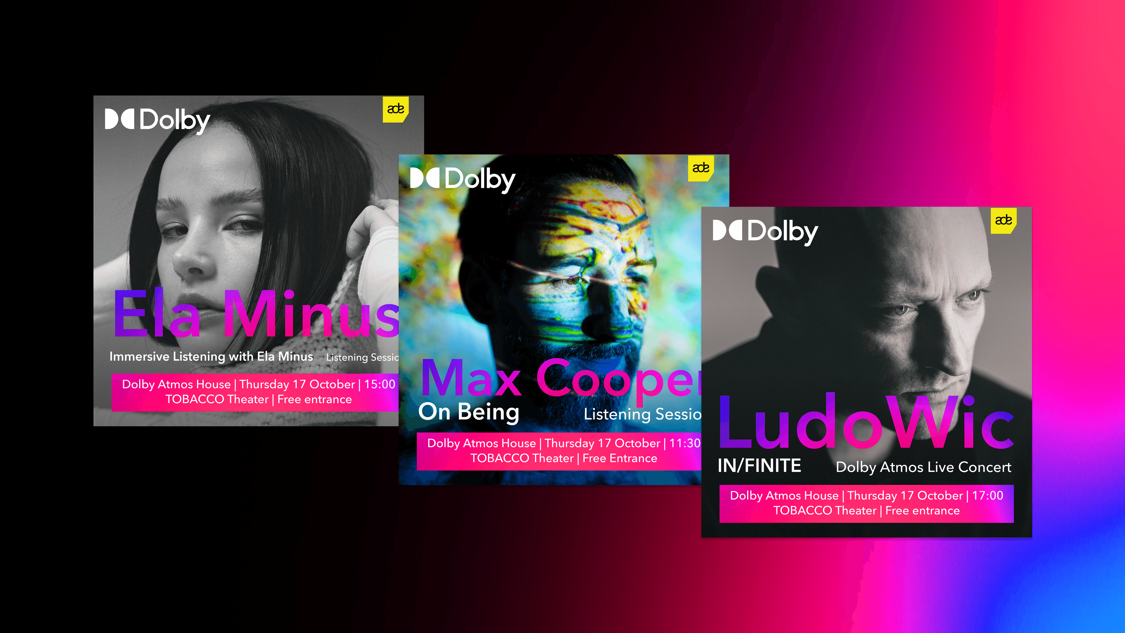 Social media formats voor de line-up aankondiging van Dolby tijdens ADE 2024.